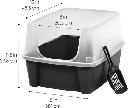 IRIS USA Open Top Cat Litter Tray with Scoop and Scatter Shield